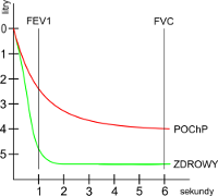 Spirometria Spirometria – rodzaj badania medycznego, podczas którego mierzy się objętości i pojemności płuc oraz przepływy powietrza znajdującego się w płucach i oskrzelach w różnych fazach cyklu oddechowego. Spirometria ma na celu określenie rezerw wentylacyjnych układu oddechowego. Badanie wykonuje się przy pomocy urządzenia zwanego spirometrem. Spirometria jest niezbędna do rozpoznania i kontroli efektów leczenia częstych chorób układu oddechowego: astmy i POChP. CZEMU SŁUŻY BADANIE? Badanie służy ocenie wydolności oddechowej człowieka. Badanie spirometryczne ma określić pojemność zawartych w płucach gazów i dać informację o sprawności wentylacyjnej układu oddechowego. Ma ono także za zadanie określenie szybkości i objętości wymiany gazowej w płucach. WSKAZANIA DO WYKONANIA BADANIA Choroby układu oddechowego. Operacje na miąższu płucnym. Monitorowanie leczenia chorób płuc. Badanie jest wykonywane na zlecenie lekarza SPOSÓB PRZYGOTOWANIA DO BADANIA Nie ma specjalnych zaleceń. Nie ma bezwzględnej konieczności wykonywania wcześniej innych badań. OPIS BADANIA W czasie badania pacjent oddycha poprzez ustnik połączony specjalną rurką z aparatem spirometrycznym . Często pacjentowi zakłada się odpowiedni zacisk na nos, który zapewnia, że powietrze oddechowe w całości przechodzi przez ustnik. Przed przystąpieniem do właściwych pomiarów spirometrycznych chory powinien wykonać kilka głębokich oddechów. Kolejna czynność to wzięcie bardzo głębokiego wdechu i po przyłożeniu szczelnie ustnika do ust, jak najszybsze wydmuchnięcie do aparatu całego zapasu powietrza zawartego w płucach. Dalsze ruchy oddechowe wykonywane są zgodnie z poleceniami osoby wykonującej badanie. W czasie wykonywania pomiarów na ekranie monitora spirografu wyświetlają się wartości poszczególnych parametrów, m.in. VC - pojemność życiowa, FEV - nasilona objętość wydechowa pierwszosekundowa. Pierwsza z nich obrazuje pojemność płuc w czasie głębokiego wdechu, druga - objętość powietrza wydychanego w czasie maksymalnie nasilonego i szybkiego wydechu (obie te wartości obrazują pośrednio możliwości adaptacji oddechowej chorego po usunięciu płuca). W badaniu bronchospirometrycznym właściwe pomiary spirometryczne są poprzedzone bronchoskopią (patrz "Bronchoskopia"). Próbę wysiłkową przeprowadza się wykonując pomiary u pacjenta w ruchu na ergometrze rowerowym lub ruchomej bieżni. W próbie farmakologicznej badany przyjmuje poprzez wdychanie (wziewnie) lek, w próbie prowokacyjnej domniemany alergen, a następnie wykonuje się pomiary spirometryczne. Wynik badania przekazywany jest w formie opisu z podaniem wartości liczbowych badanych parametrów, niekiedy z dołączonymi wykresami. Badanie trwa zwykle kilka minut